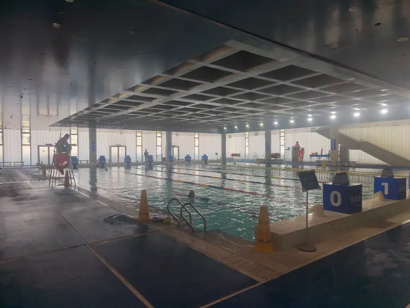 ●Πισίνα (20 m × 25 m, εξοπλισμένη με σύστημα αντλίας θερμότητας σταθερής θερμοκρασίας)